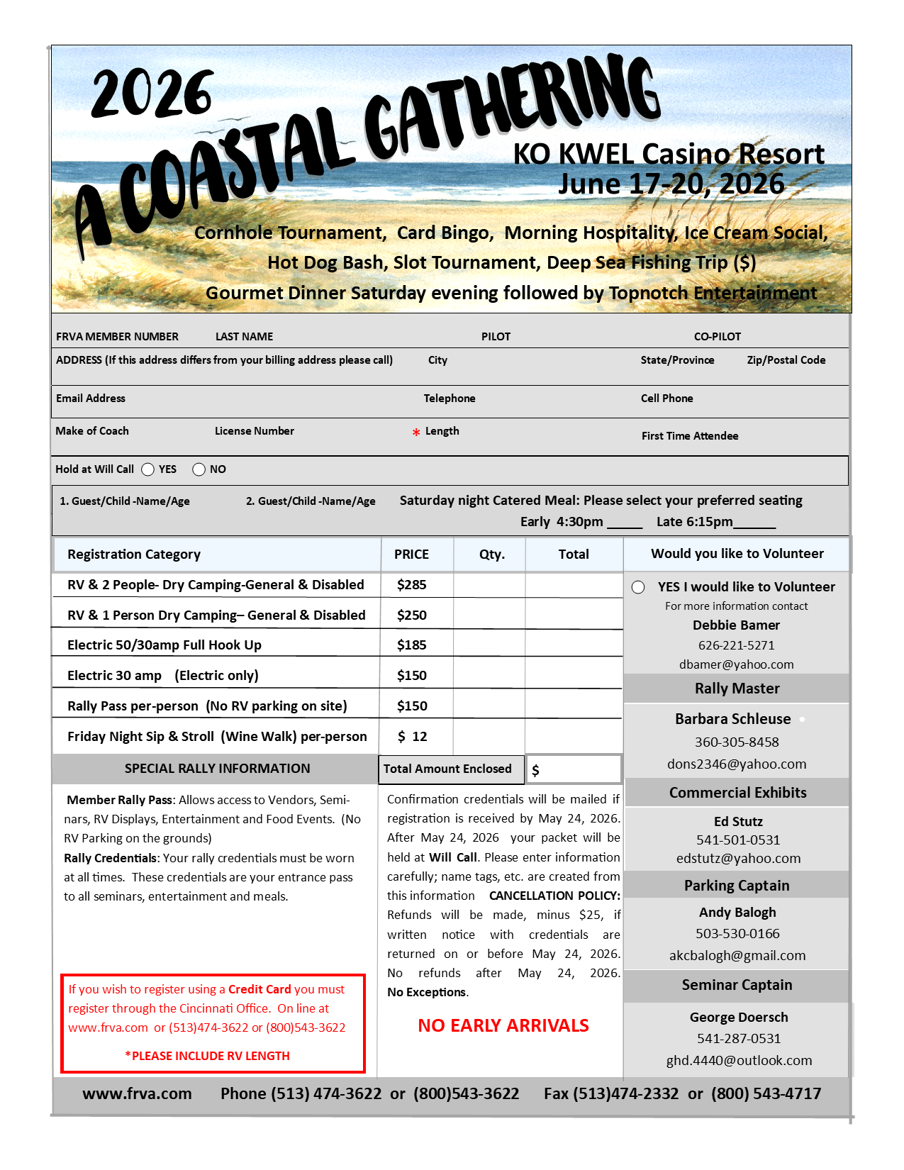 Registration opens through FRVA on December 2025. All registration must of through them. The 50amp sites will sell out quickly since they are in the RV park.
